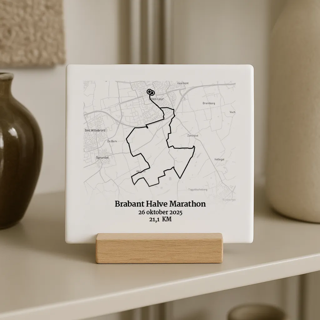 Met het Brabant Marathon 2025 Route Tegeltje leg je jouw loop letterlijk vast. De officiƫle marathonroute van 2025 wordt haarscherp weergegeven op een keramieken tegeltje, volledig te personaliseren met jouw naam en eindtijd.