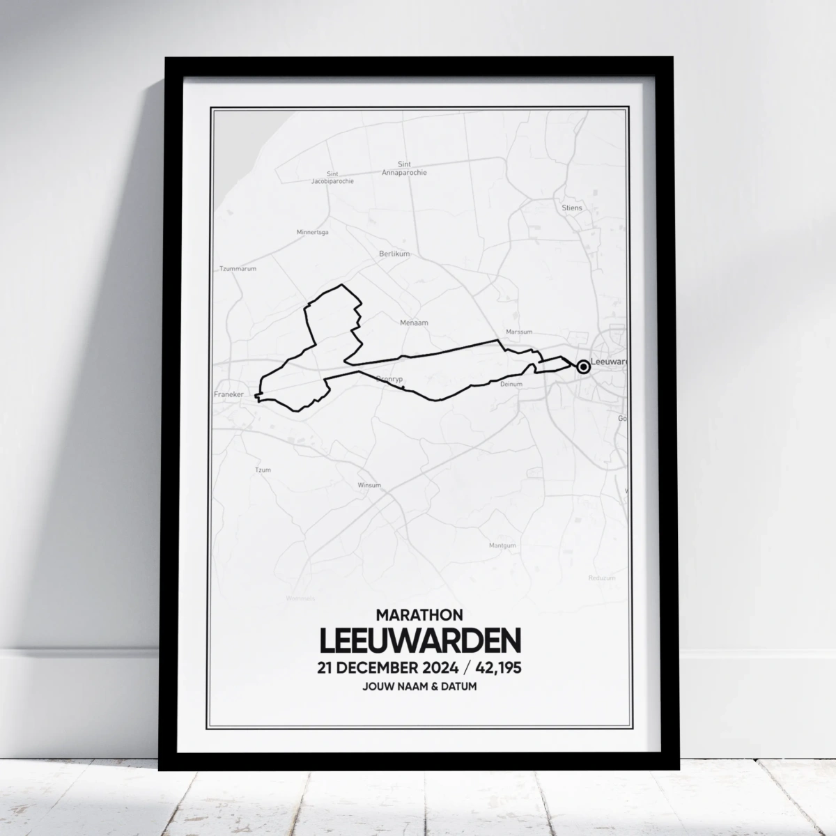 Prachtige poster met de route van de marathon in Leeuwarden van 21 december 2024. Deze mooie sportposter dient als aandenken aan dit prachtige hardloopevenement. Geef hem cadeau aan iemand die de 42 KM heeft gelopen of koop hem zelf als blijvend aandenken.